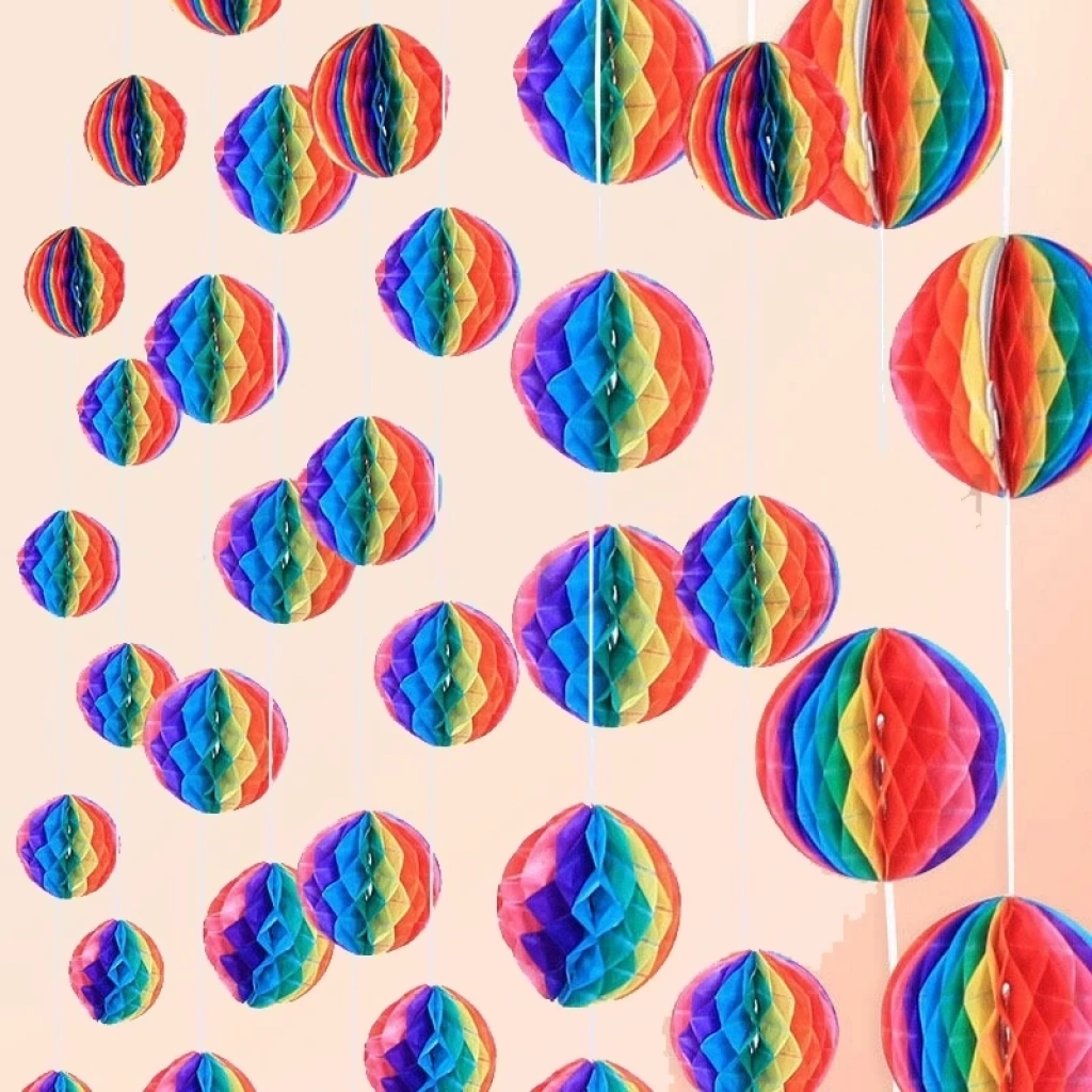 • Gökkuşağı Renkli 30 Cm Rengarenk Kağıt Süs Fener 1 Adet