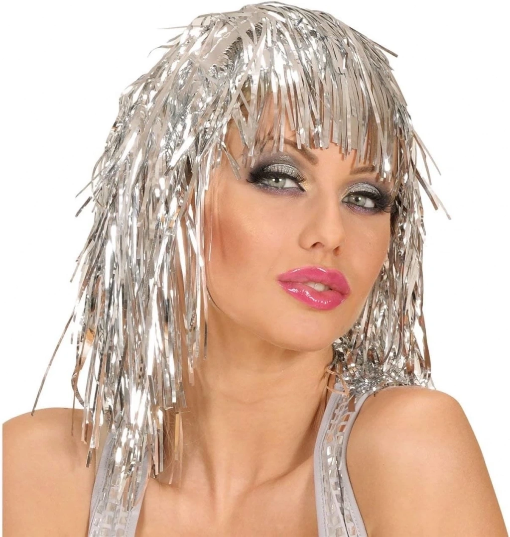 • Gümüş Işıltılı Metalize Parti Peruğu