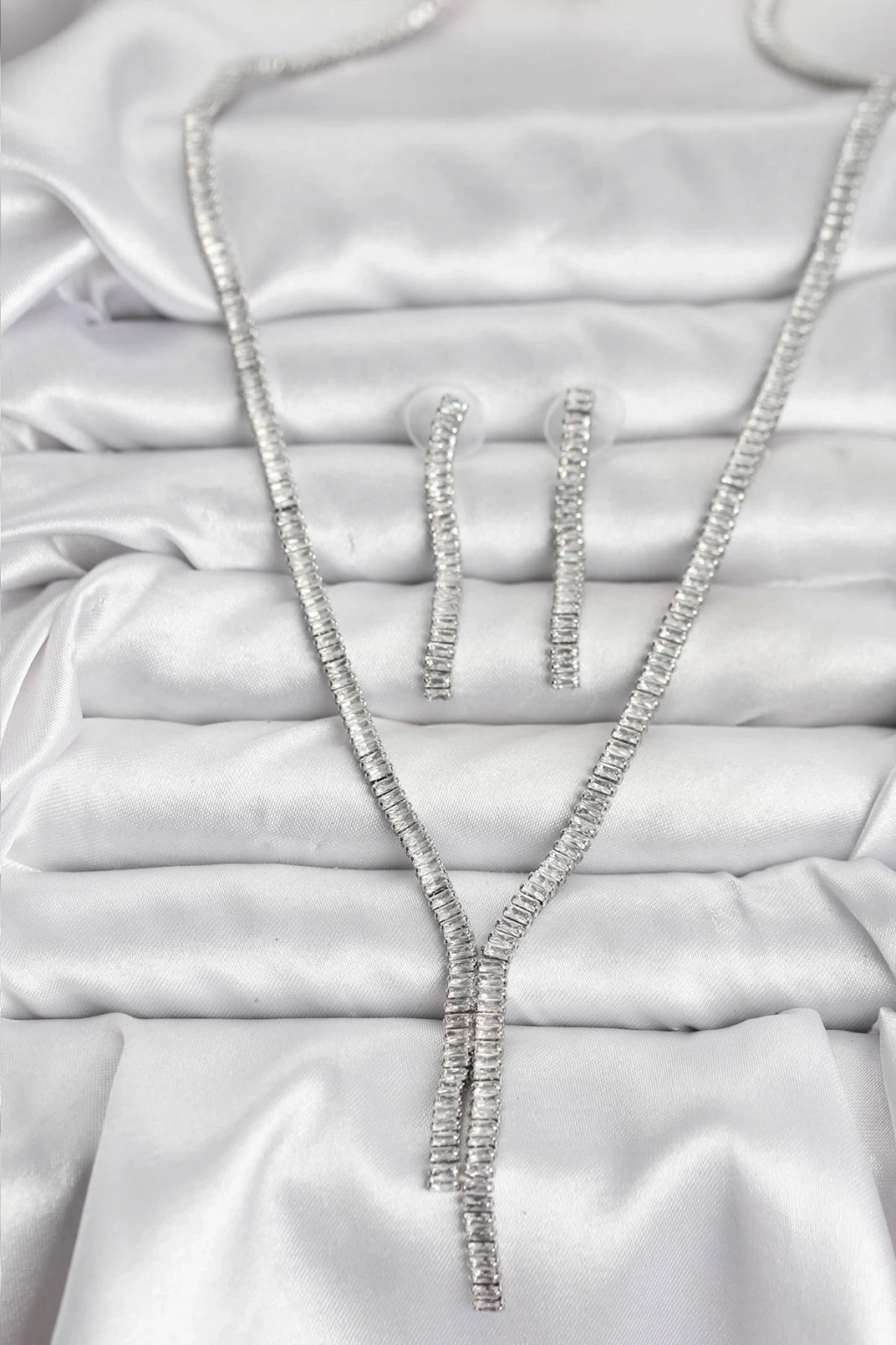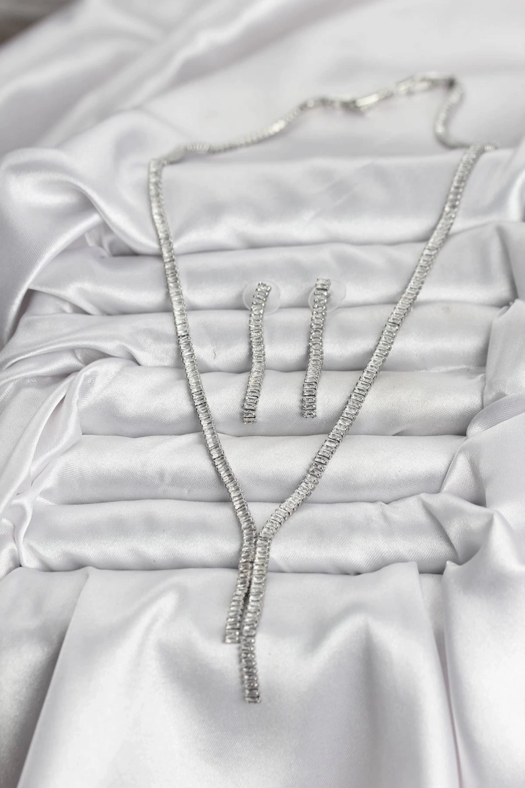 • Gümüş Renk Baget Zirkon Taşlı Kadın Kolye Küpe Set