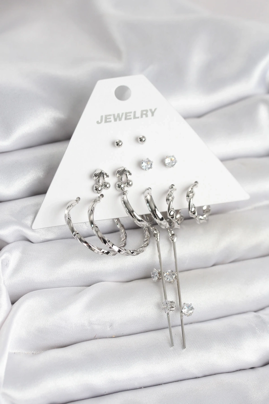 • Gümüş Renk Pirinç 6'lı Kadın Küpe Seti
