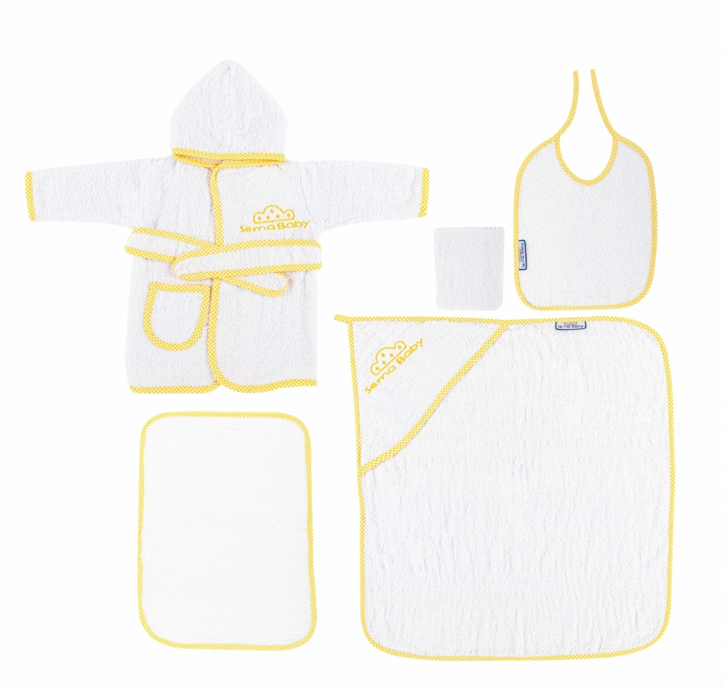 Sema Baby 5 Parça Bebek Bornoz Seti - Sarı