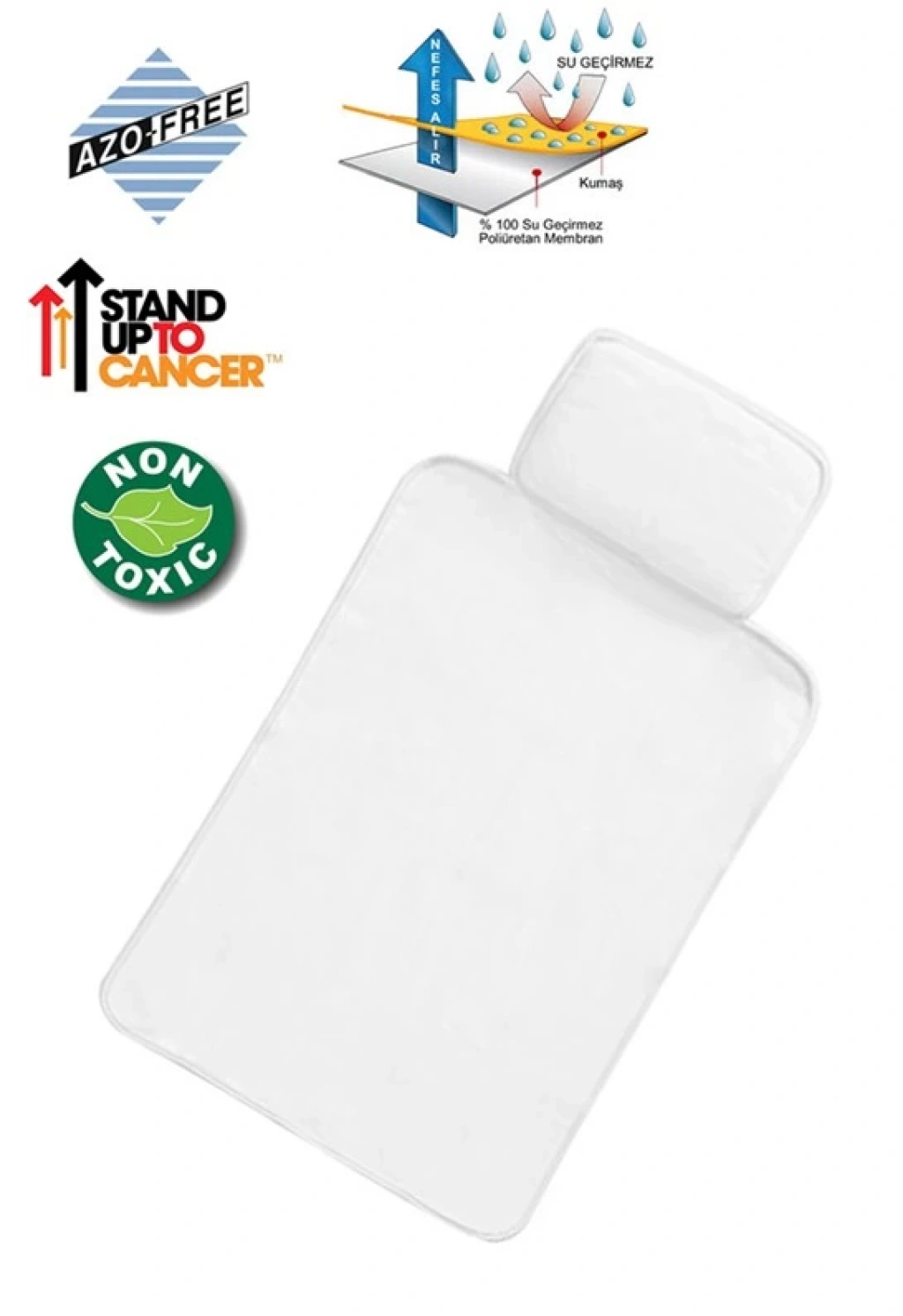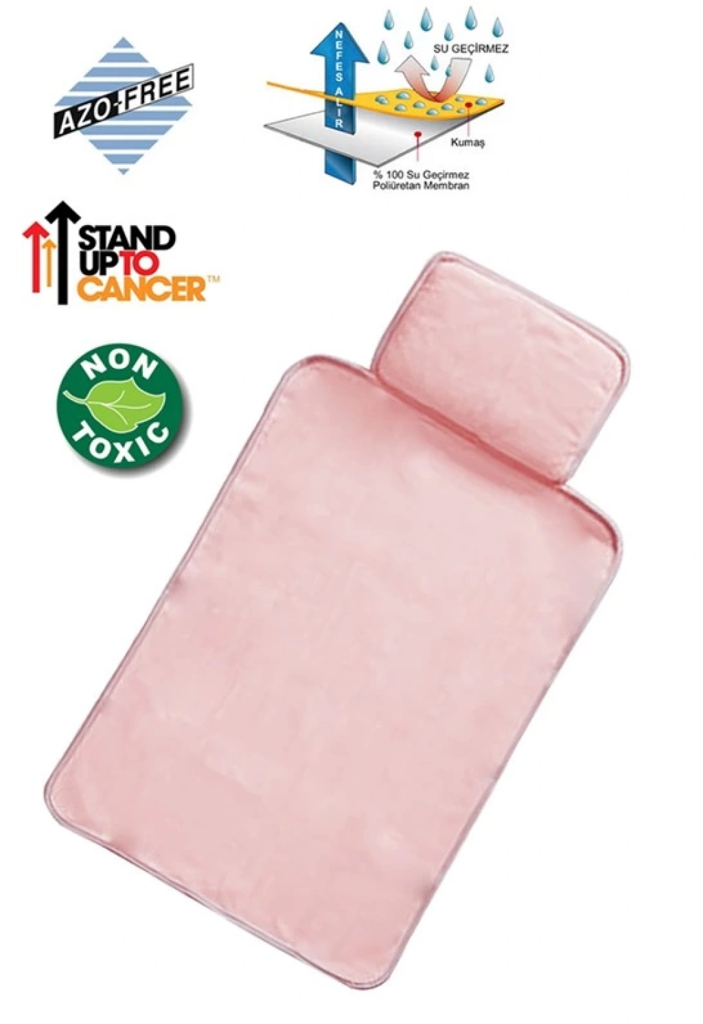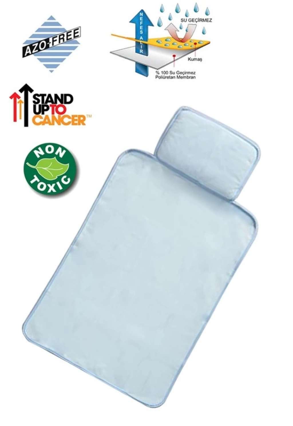 Alt değiştirme minderinin bir tarafı sıvı geçirmez ve silinebilir (son katı poliüretan) suni deri, diğer tarafı da pamuk havlu kumaştır