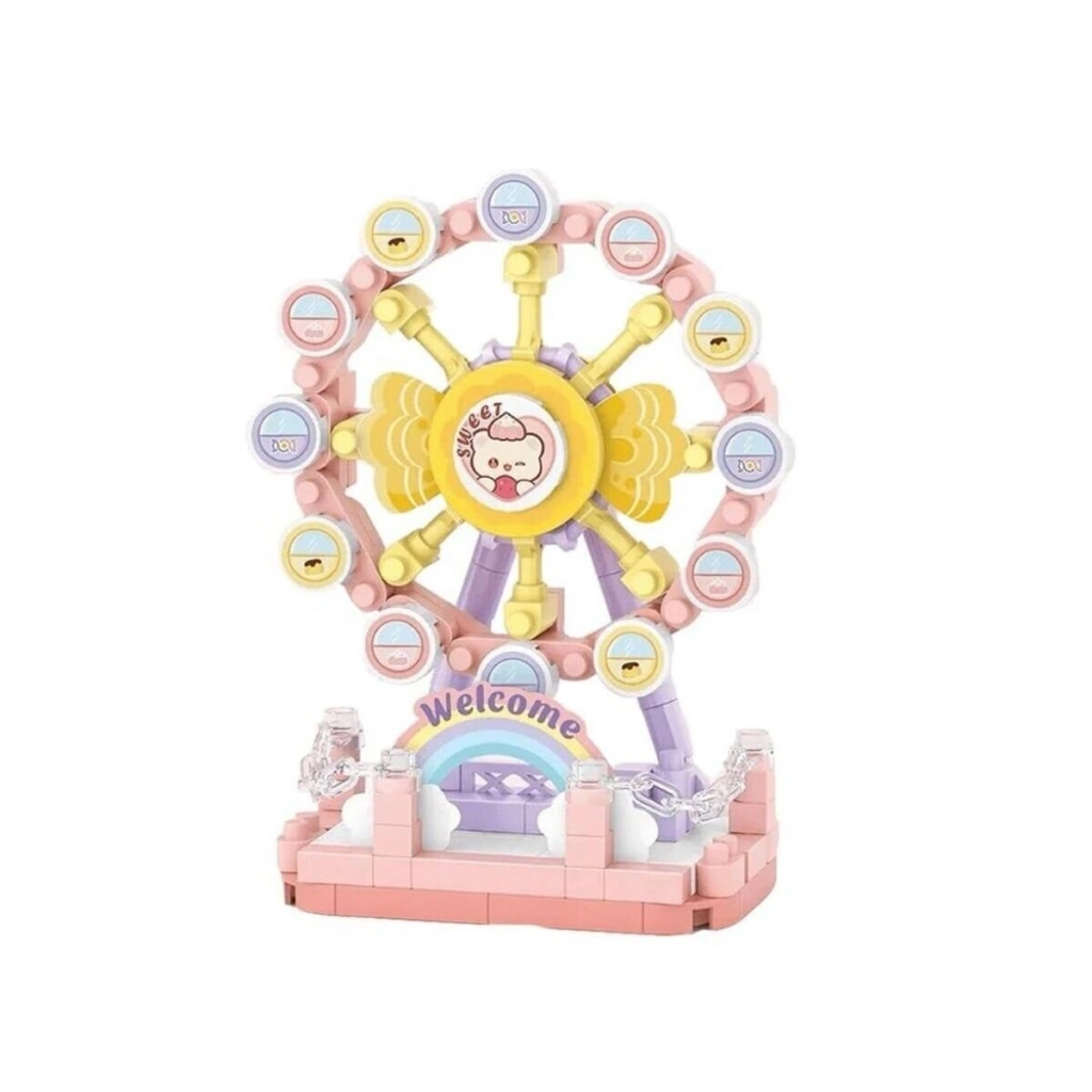 Dönme Dolap Mini Block Oyuncak, eğlence parklarından ilham alan sevimli tasarımıyla kısa sürede tamamlanabilen keyifli bir yapı setidir.