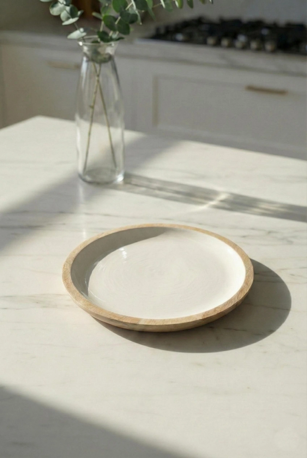 Mango Agacı Pasta Tabağı & Sunum Tabağı 20 Cm Krem