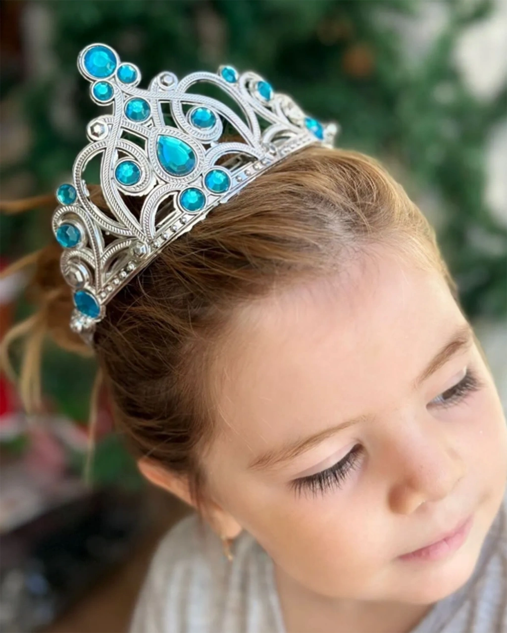 Mavi Taşlı Elsa Çocuk Tacı Prenses Tacı Kraliçe Tacı 16x14 Cm