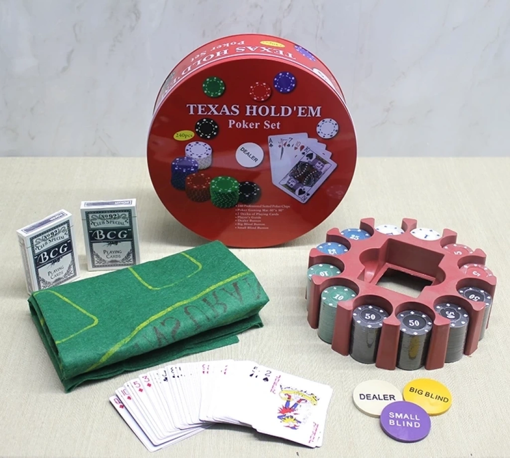Metal Kutulu 240 Chip Ve 2 Adet İskambil Kağit Setine Sahip Poker Oyunu Alk3539