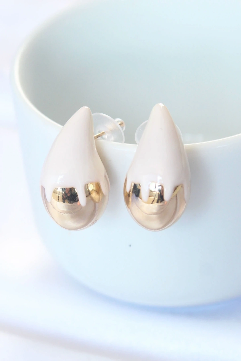• Minimal Beyaz Mineli Çift Renk Damla Küpe
