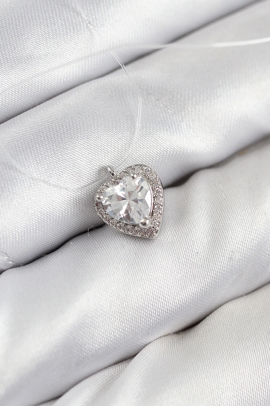• Misineli Kalp Model Gümüş Renk Hayalet Kolye