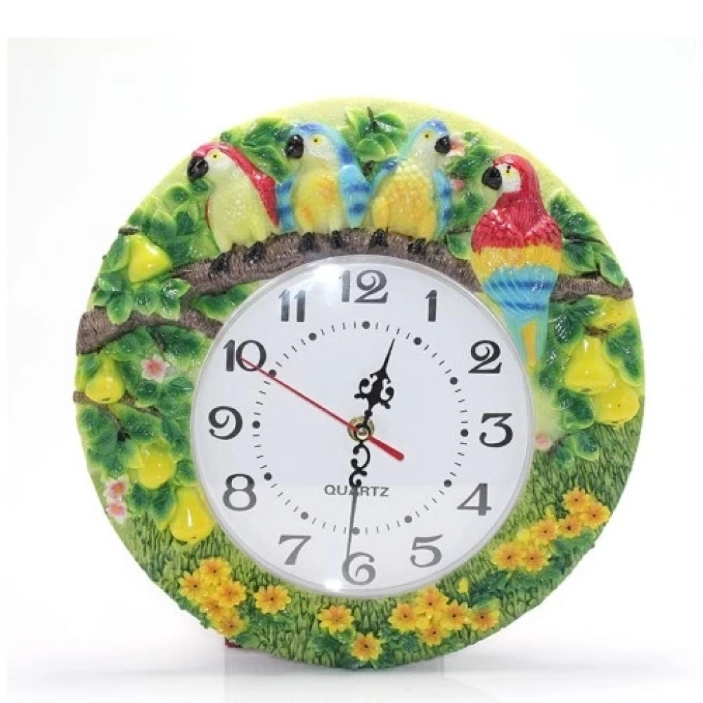 Papağanlı Polyester Duvar Saati