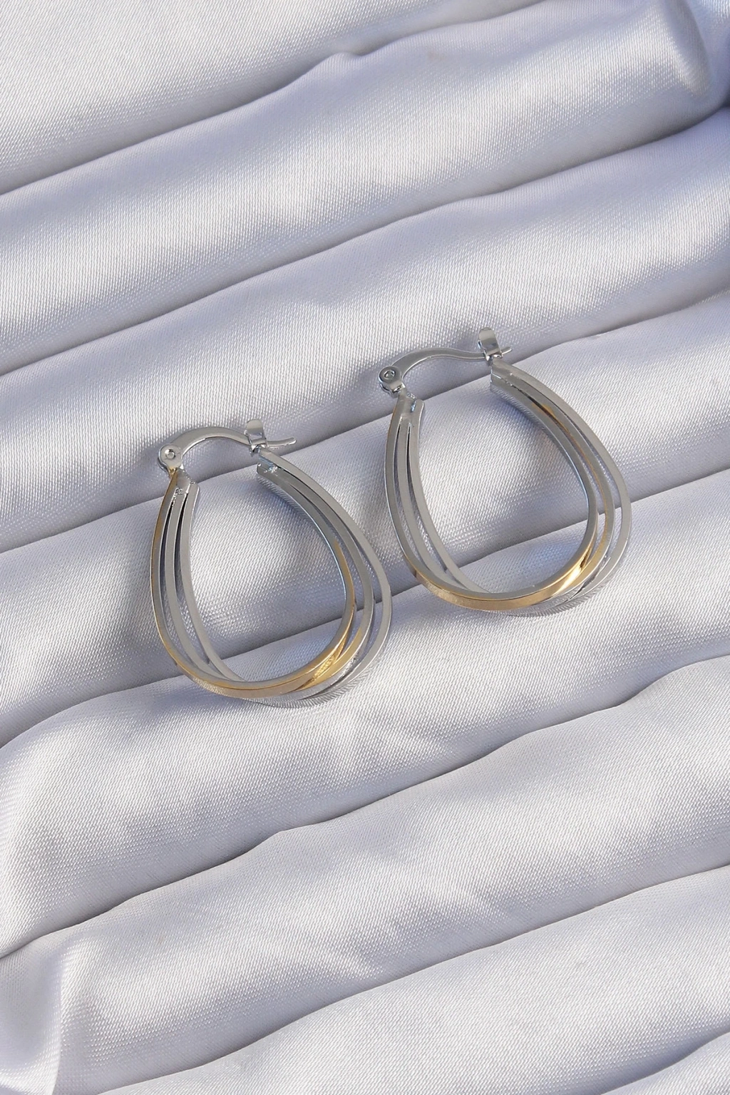 • Pirinç Gold Gümüş Renkli Oval Çoklu Görünümlü Küpe