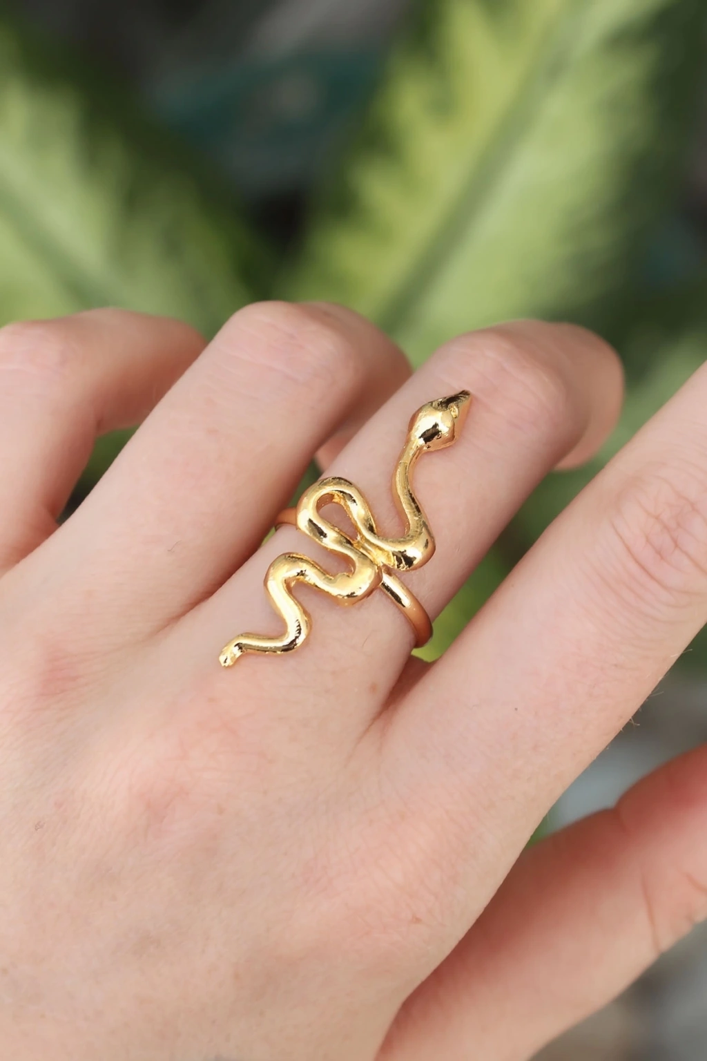 • Pirinç Gold Renk Ayarlanabilir Yılan Yüzük