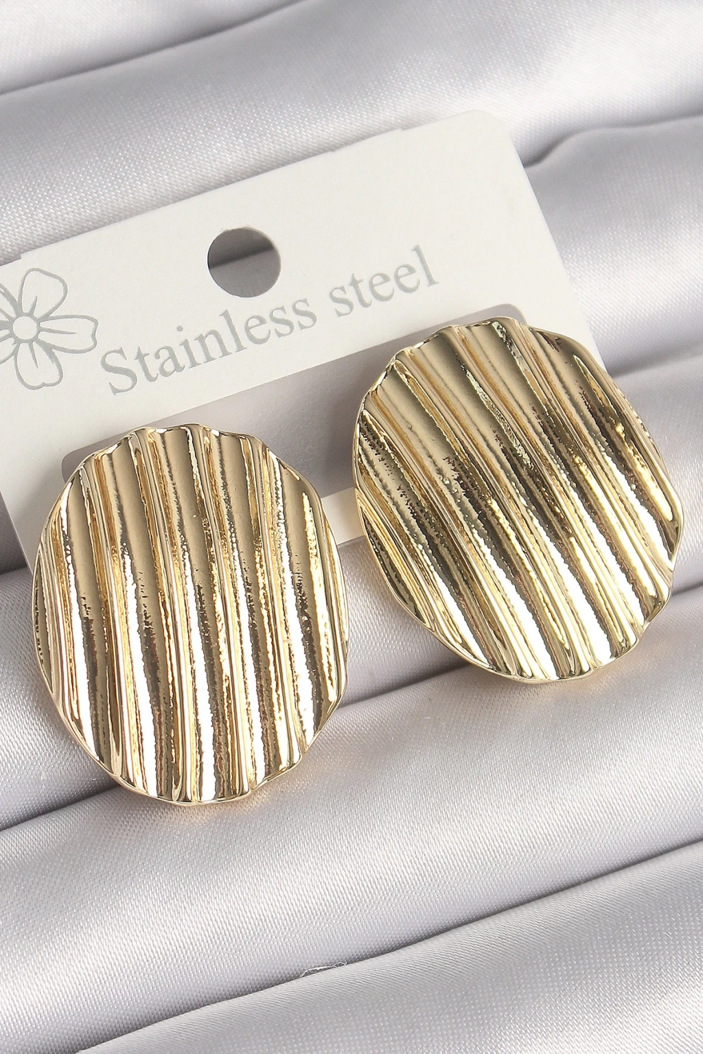 • Pirinç Gold Renk İşlemeli Daire Plaka Model Kadın Küpe