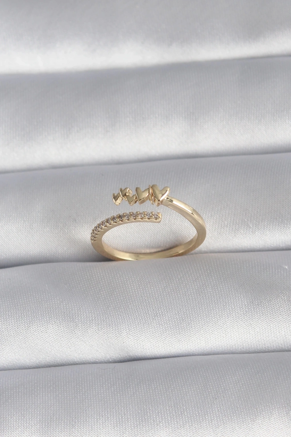 • Pirinç Gold Renk Zirkon Taş Detay Kalp Model Kadın Yüzük