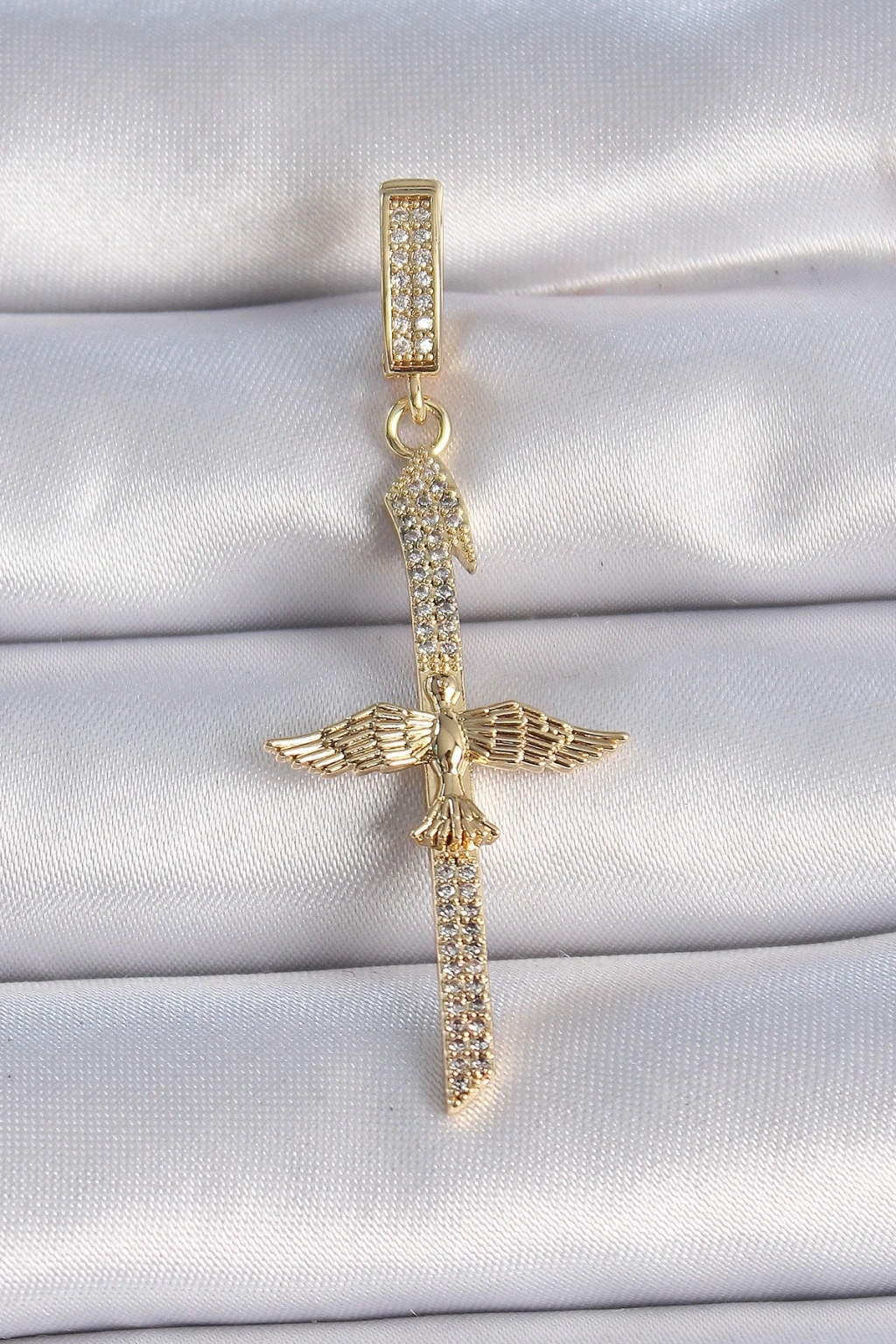 • Pirinç Gold Renk Zirkon Taş Detaylı Elif Model Anka Kuşu Figür Ajda Charm