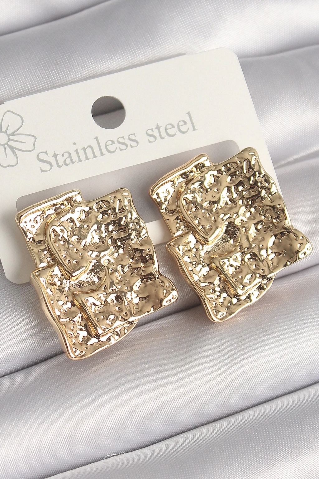 • Pirinç Gümüş Renk İşlemeli Kare Plaka Model Kadın Küpe