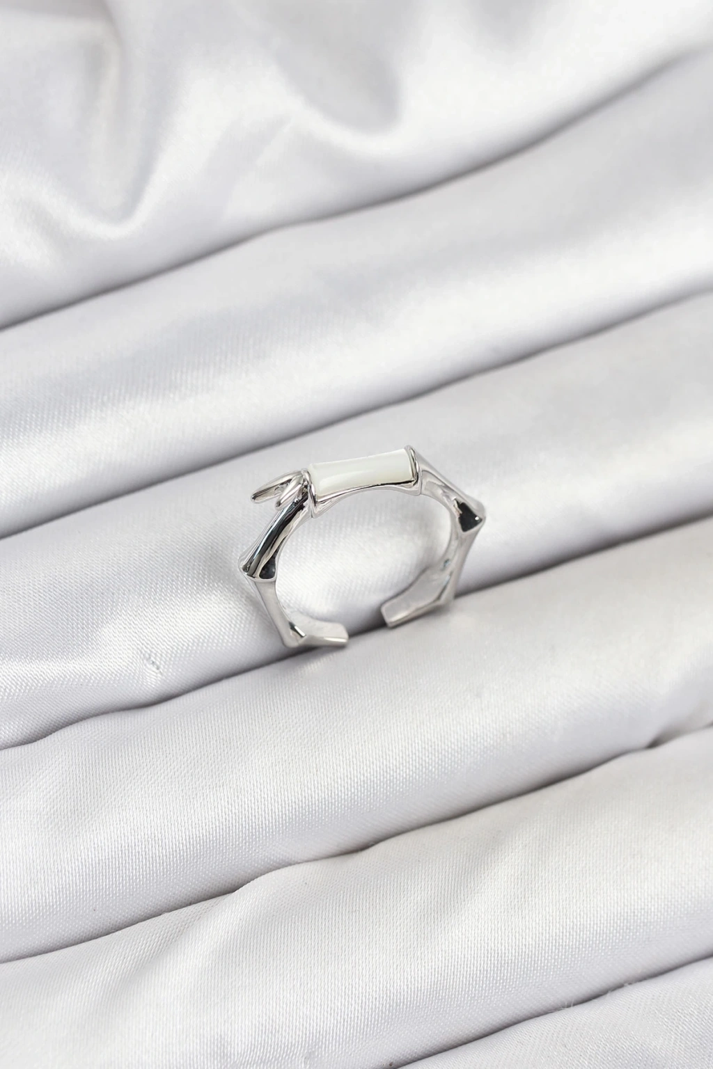 • Pirinç Gümüş Renk Kemik Model Kadın Yüzük