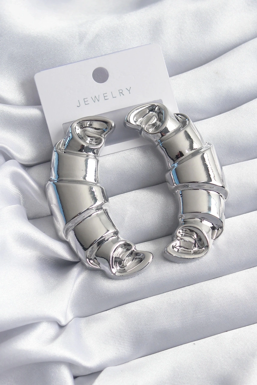 • Pirinç Gümüş Renk Kruvasan Model Kadın Küpe