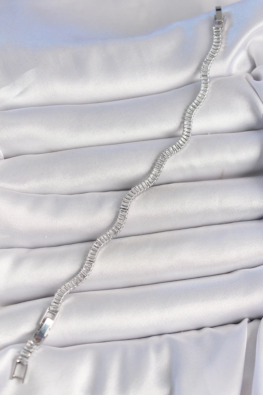 • Pirinç Gümüş Renk Su Yolu Zirkon Taşlı Model Kadın Bileklik