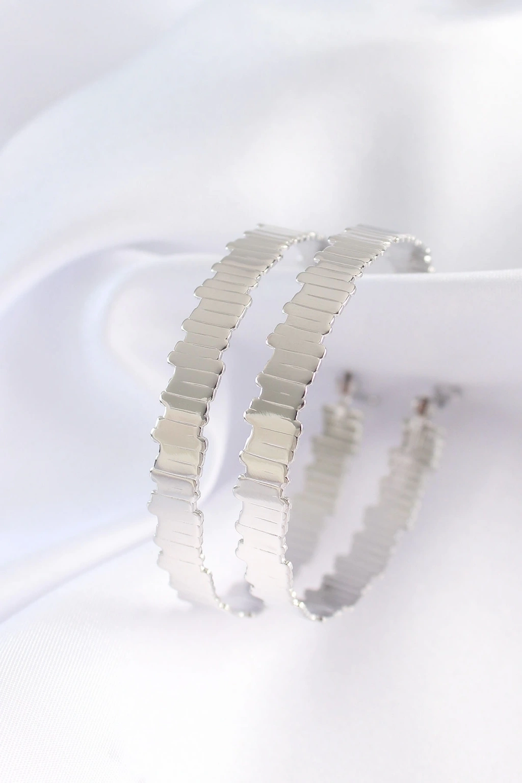 • Pirinç Gümüş Renk Tırtıklı Halka Küpe