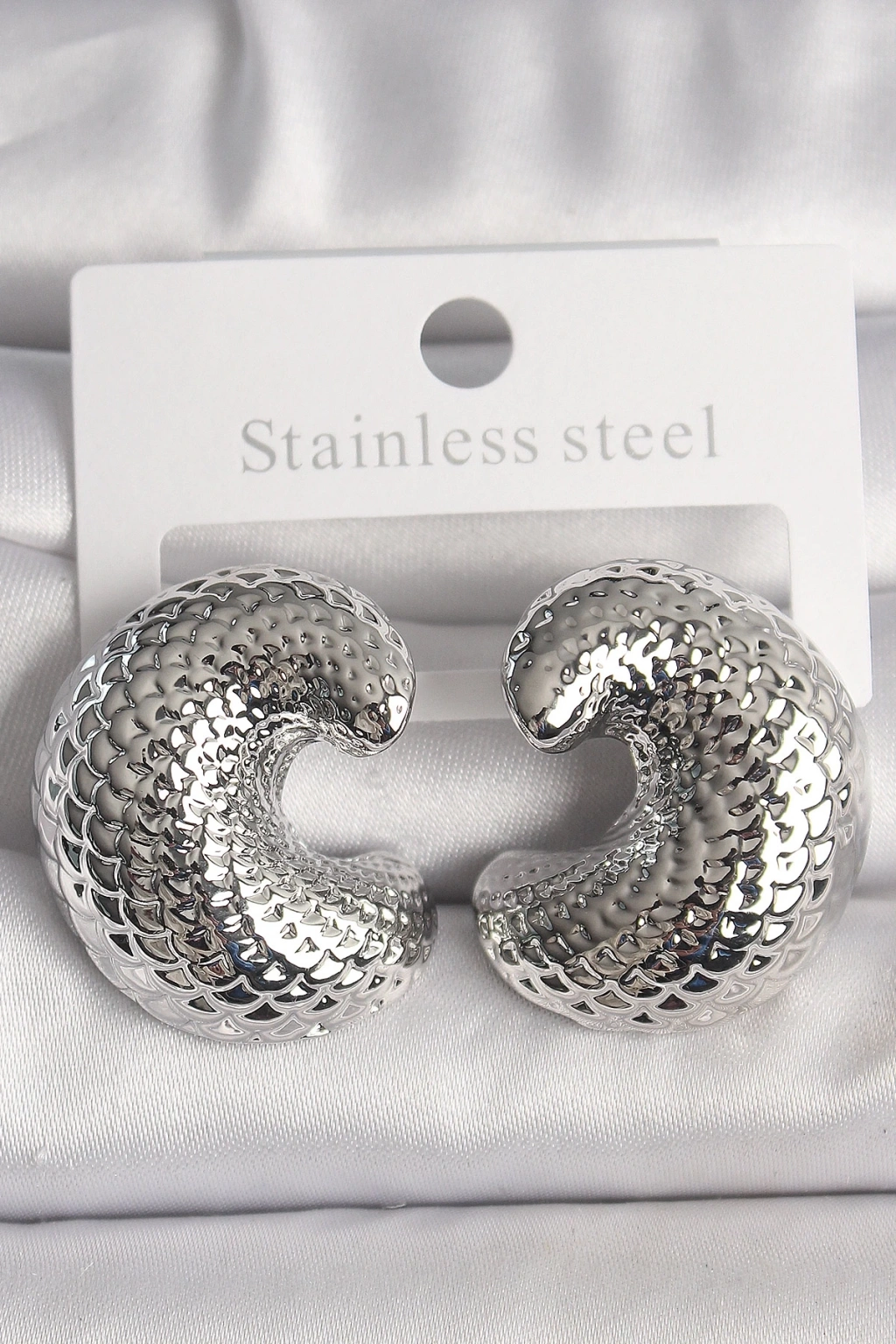 • Pirinç Gümüş Renk Yılan Sırtı İşlemeli Yarım Halka Model Kadın Küpe