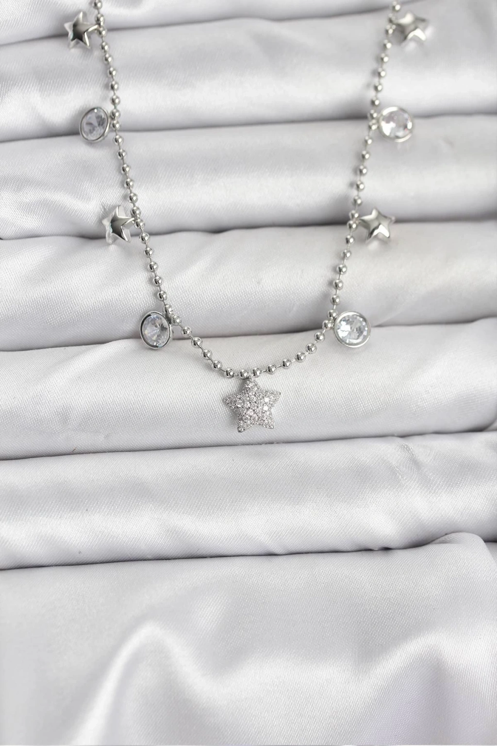 • Pirinç Gümüş Renk Yıldız Model Kadın Kolye