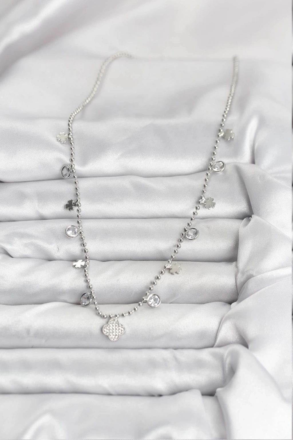 • Pirinç Gümüş Renk Yonca Model Kadın Kolye