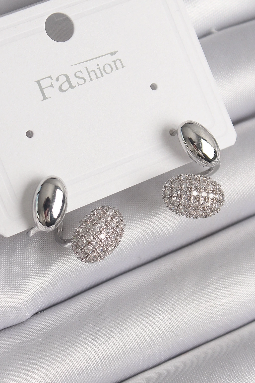 • Pirinç Gümüş Renk Zirkon Taşlı Bombeli Model Kadın Küpe