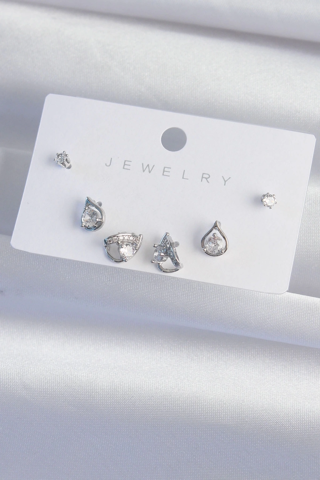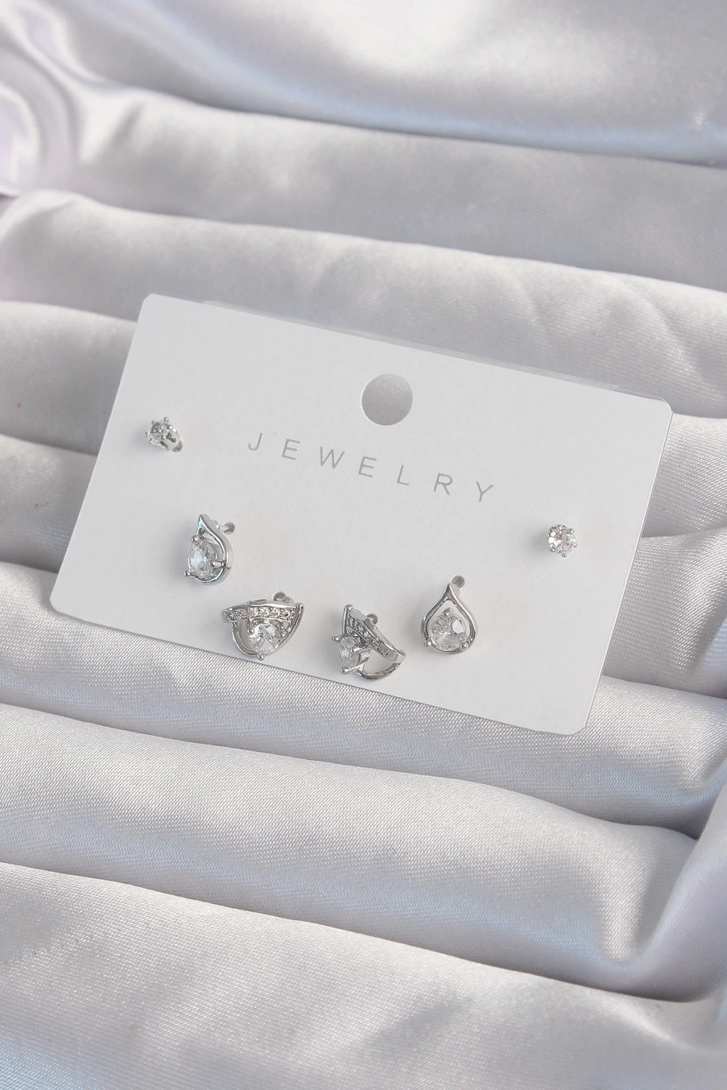• Pirinç Gümüş Renk Zirkon Taşlı Damla Model Küpe Seti