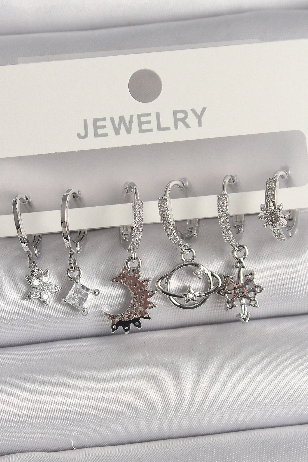 • Pirinç Gümüş Renk Zirkon Taşlı Gezgen Model Kadın Küpe Seti