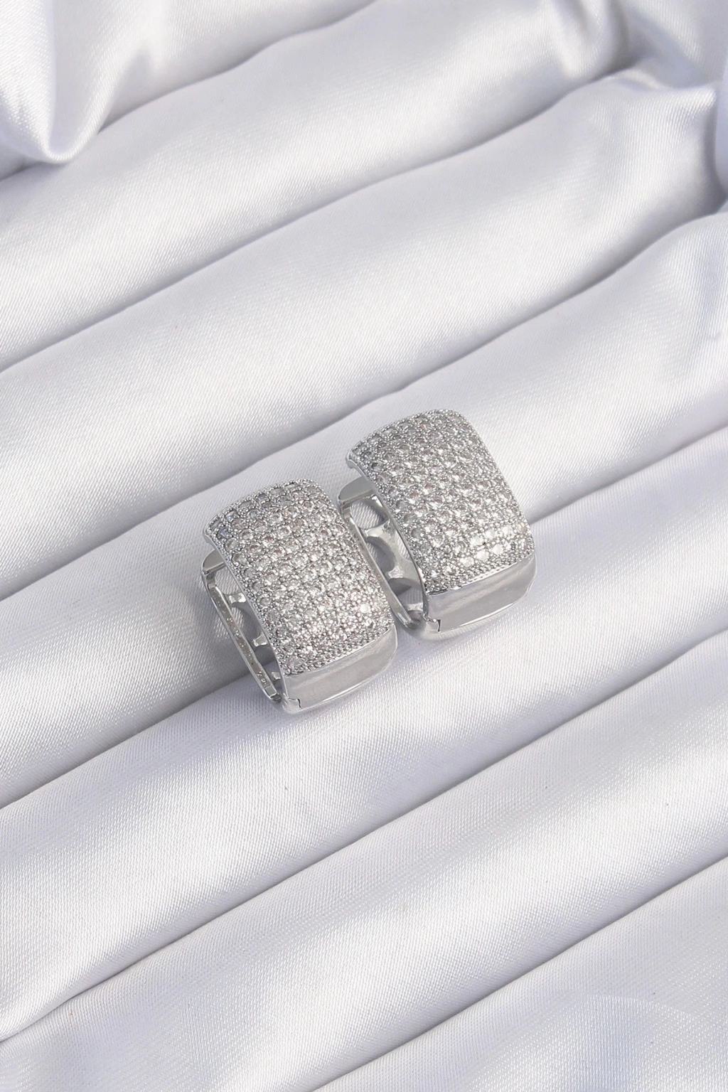 • Pirinç Gümüş Renk Zirkon Taşlı Minimal Halka Küpe