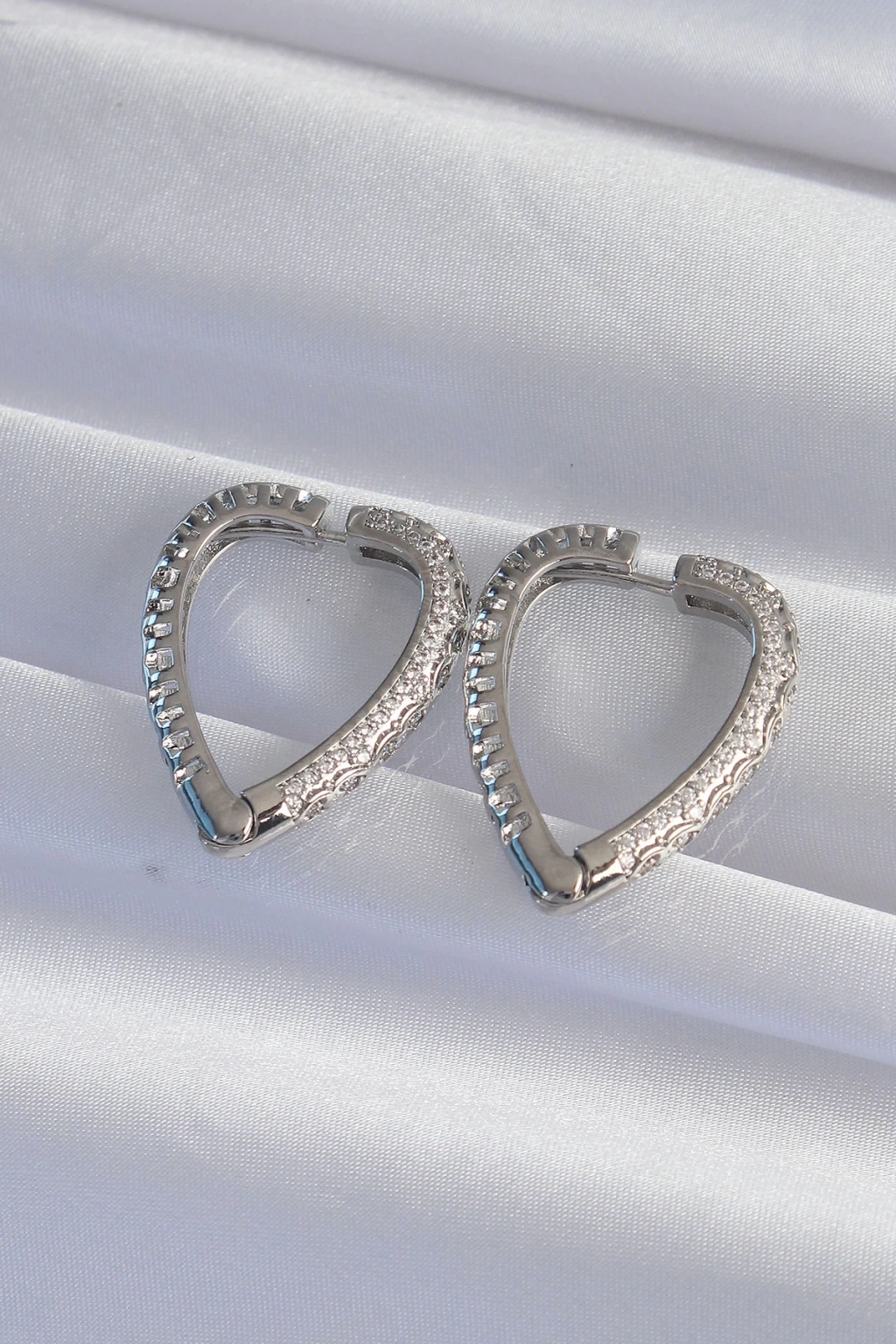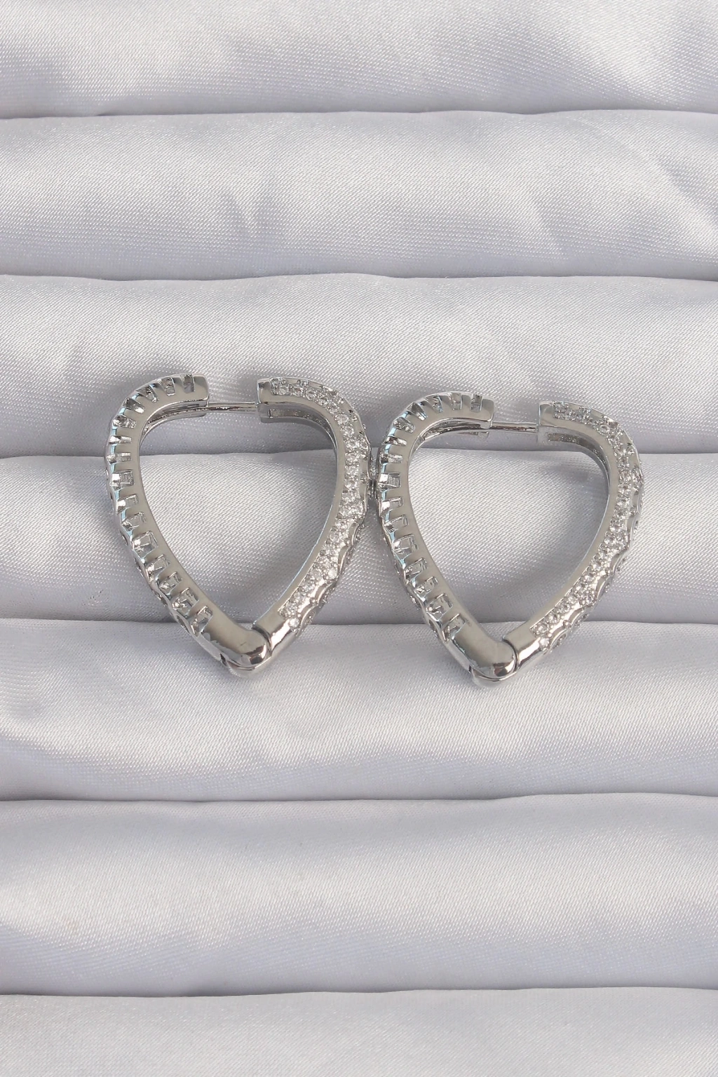 • Pirinç Gümüş Renk Zirkon Taşlı Motifli Kalp Küpe