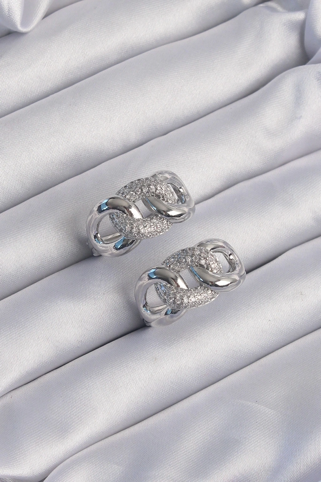• Pirinç Gümüş Renk Zirkon Taşlı Samanyolu Küpe