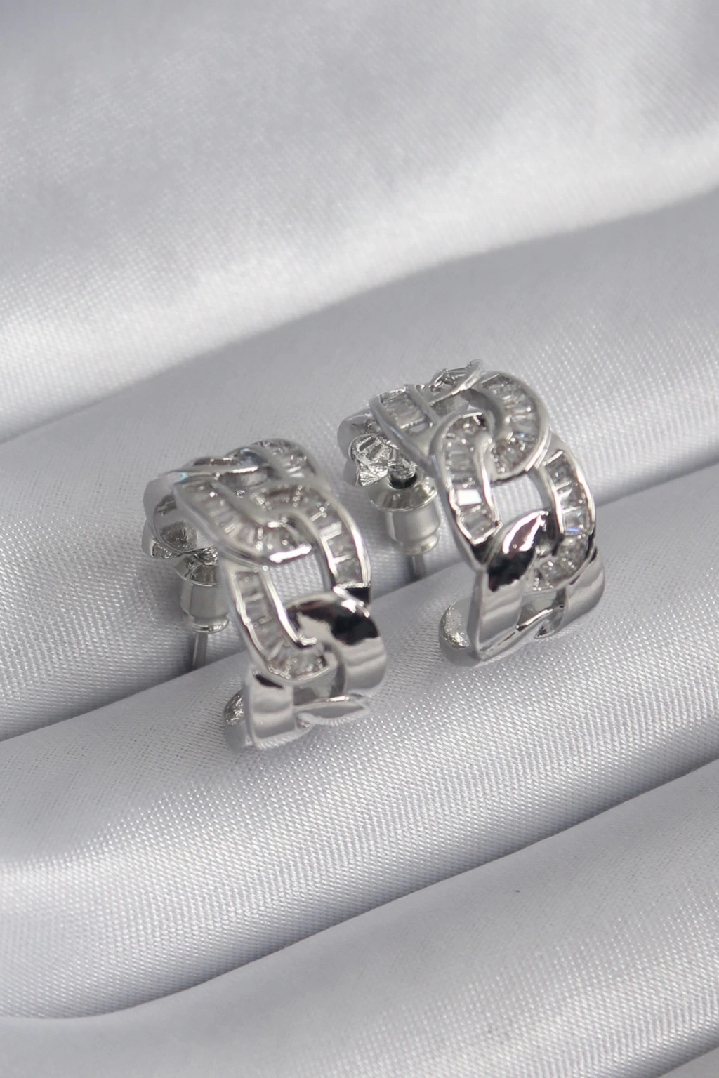 • Pirinç Gümüş Renk Zirkon Taşlı Zincir Model Kadın Küpe