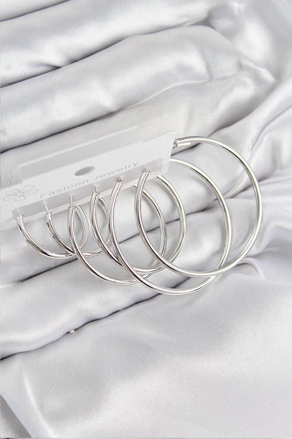 • Pirinç Halka Model Gümüş Renk Kadın Set Küpe