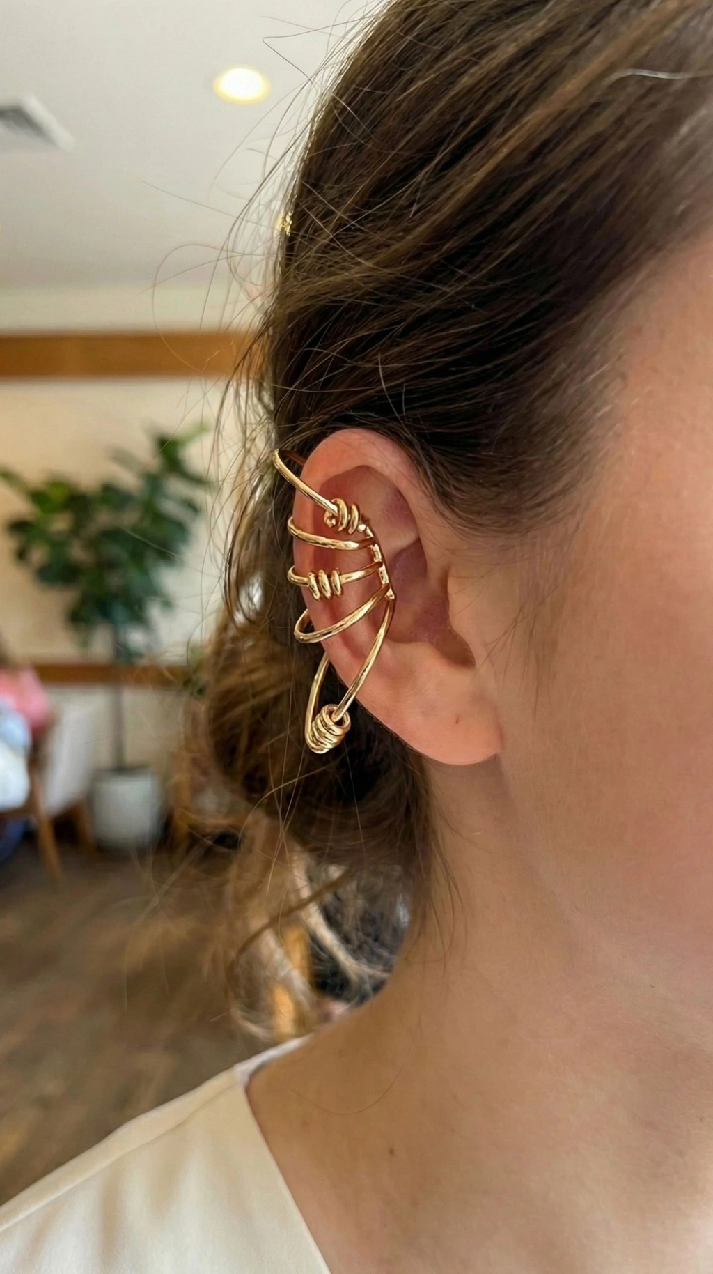 Pirinç Halkalı Model Gold Renk Kıkırdak Küpe