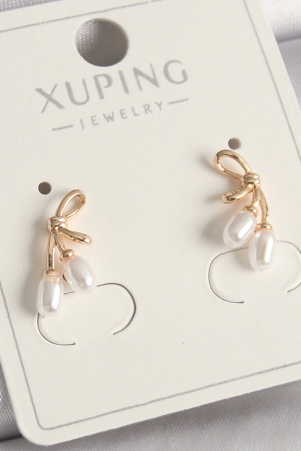 • Pirinç Rose Renk İnci Detay Düğüm Model Kadın Küpe