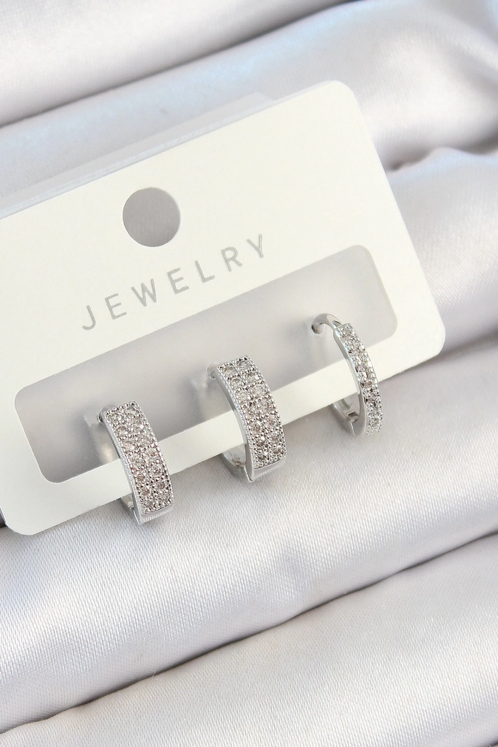 • Pirinç Zirkon Taşlı Halka Model Gümüş Renk 3'lü Çift Kadın Küpe Set