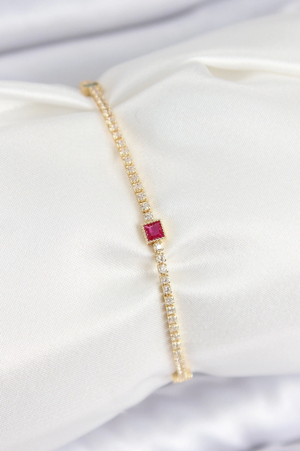 • Pirinç Zirkon Taşlı Kare Model Gold Renk Kadın Bilekilk