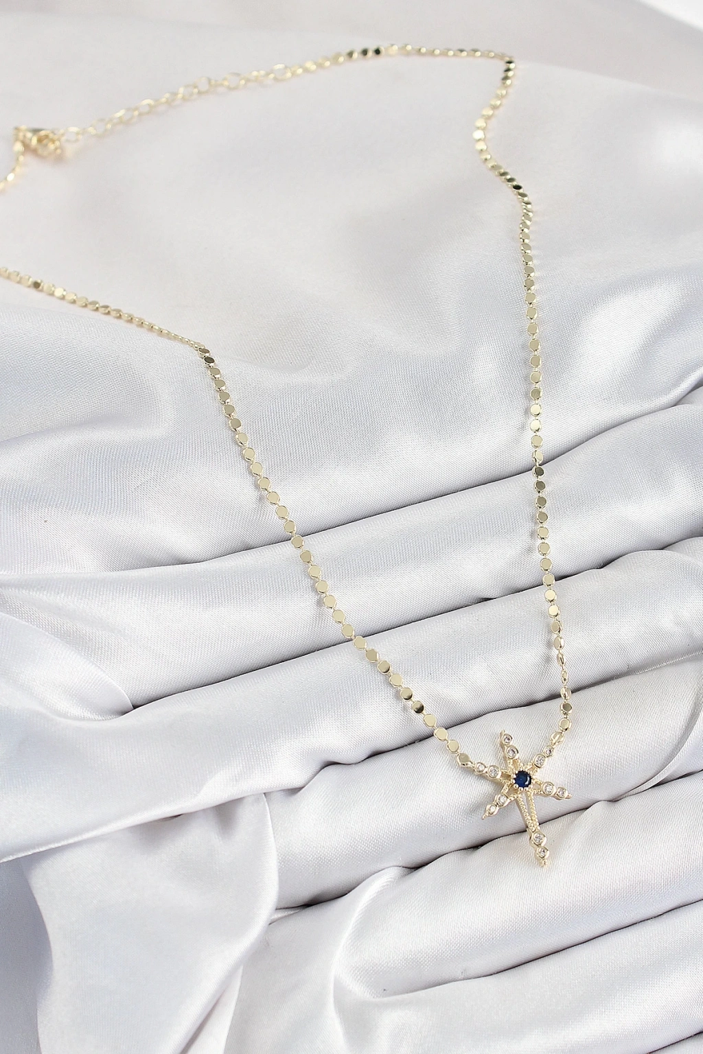 • Pirinç Zirkon Taşlı Kutup Yıldızı Model Ezme Zincir Gold Renk Kadın Kolye