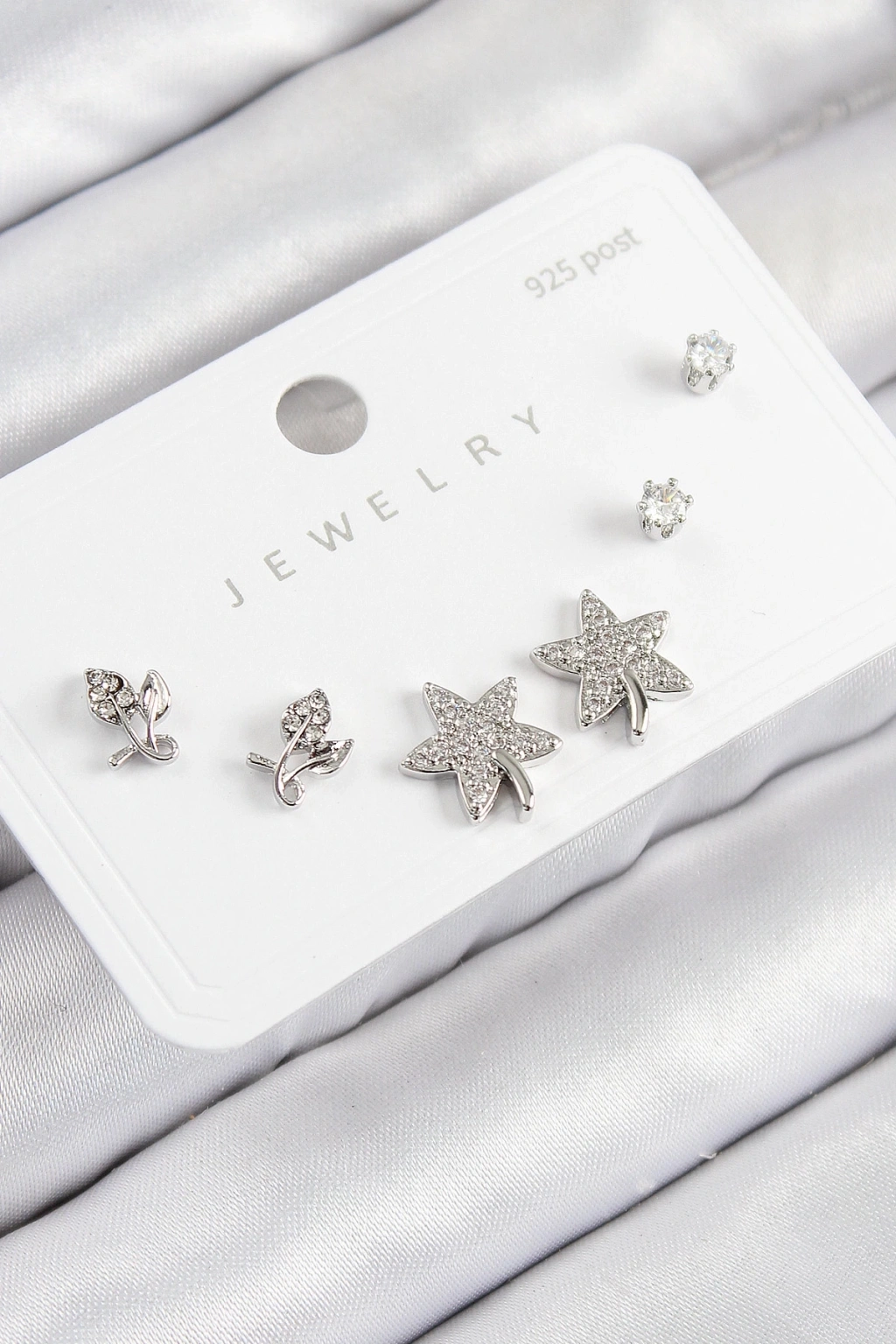• Pirinç Zirkon Taşlı Yıldız Ve Gül Model Gümüş Renk 925 Ayar Gümüş Çivi Kadın Küpe Set