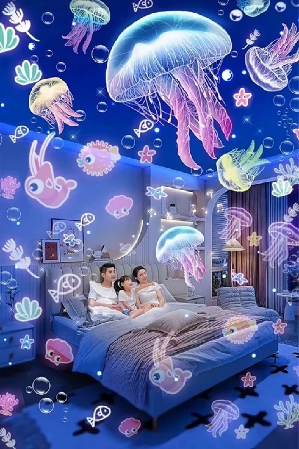 Robot Projeksiyon Gece Lambası Hoparlörlü Şarjlı Yıldızlı Gökyüzü Temalı Led Projeksiyon Lambası