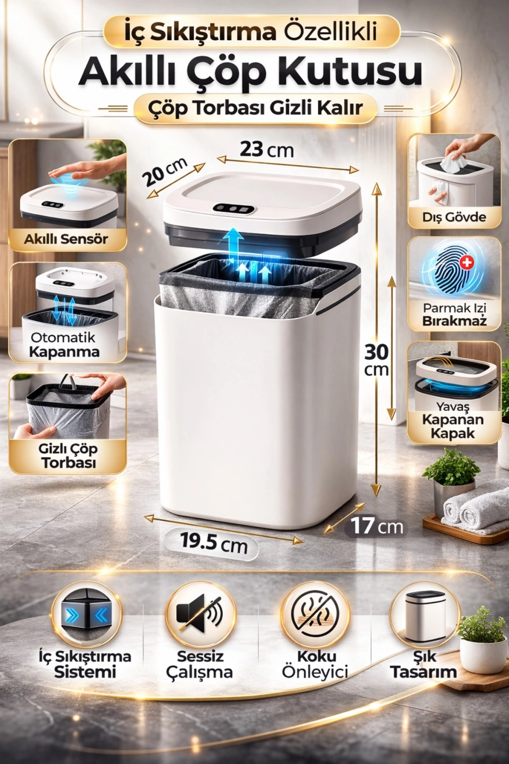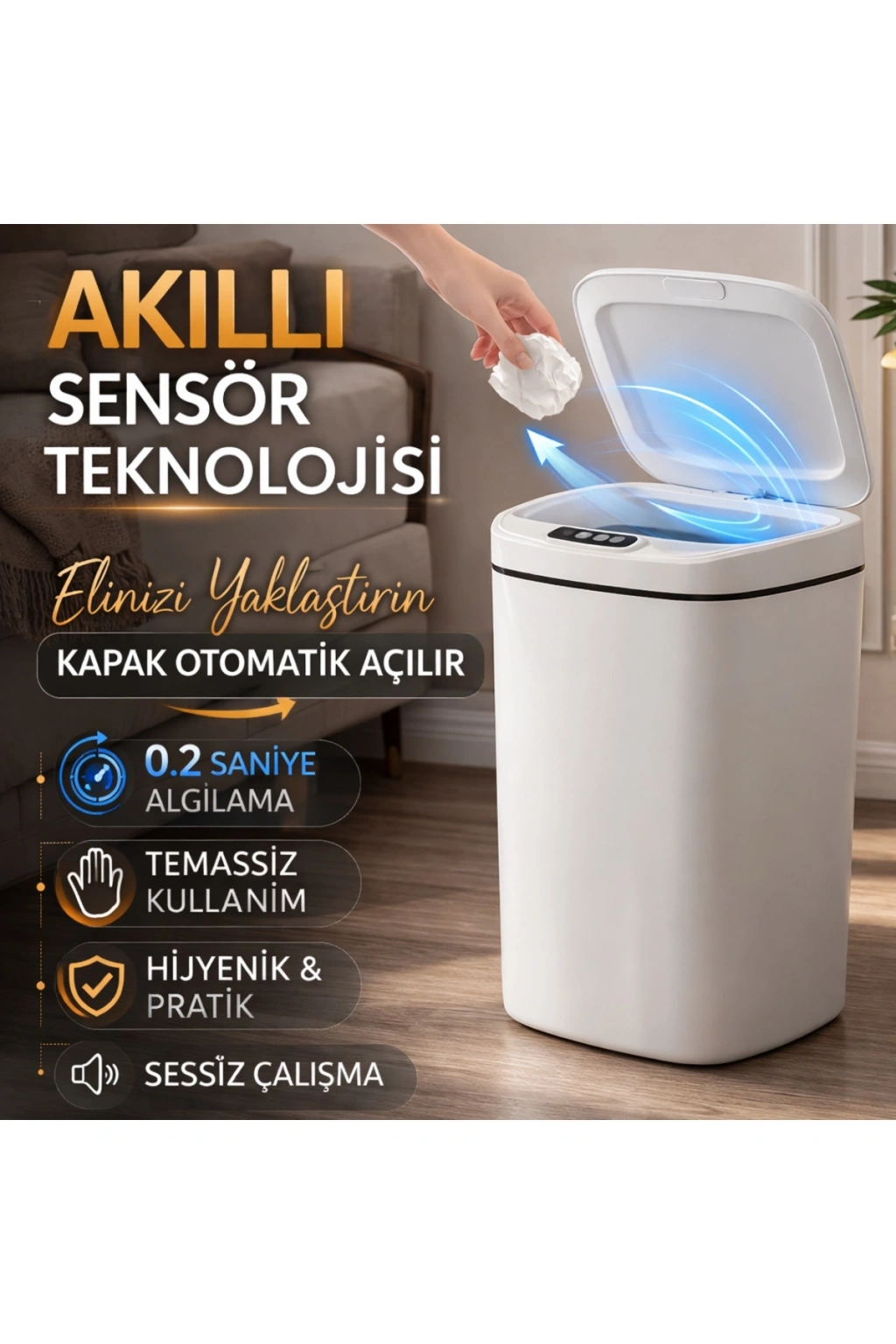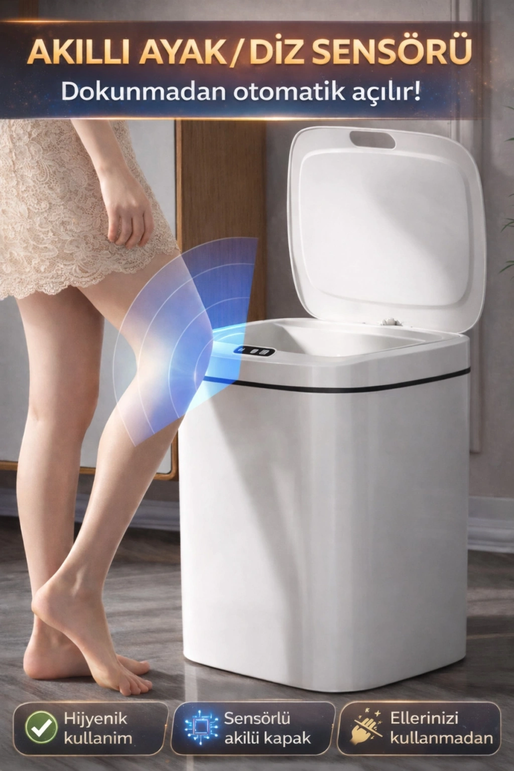 Sensörlü Çöp Kovası Otomatik Kapak Temassız