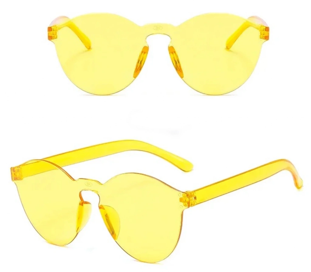 Sert Mika Oval Şekilli Çerçevesiz Sarı Gözlük Retro Parti 5x14 Cm