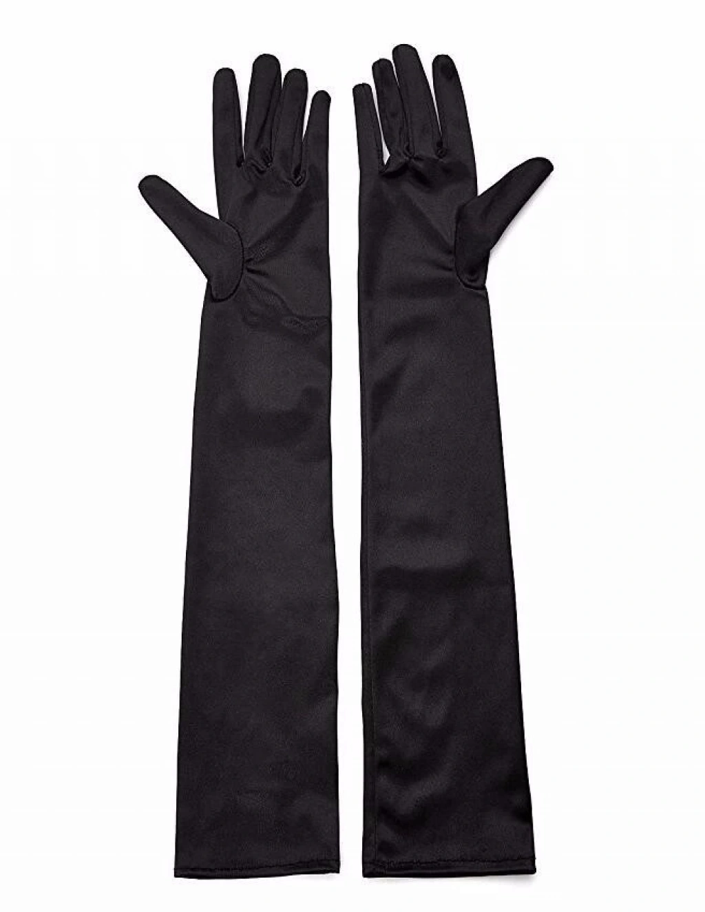 • Siyah Renk Likralı Dirseğe Kadar Uzun Kumaş Eldiven 40 Cm