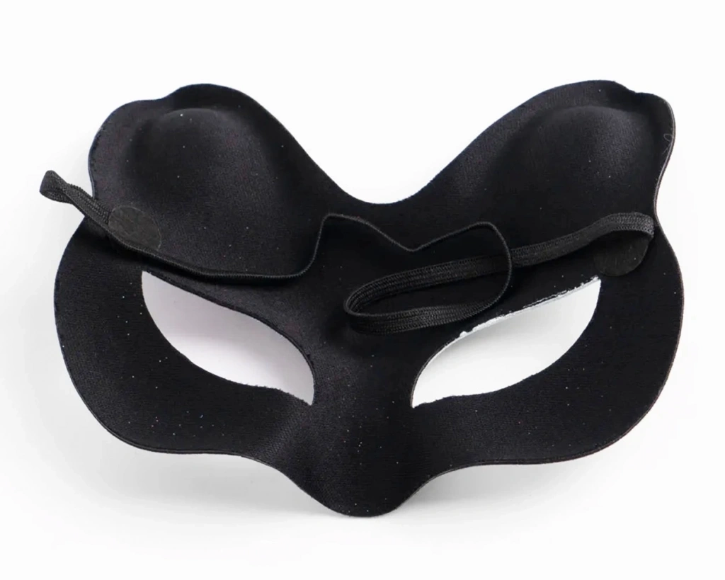 Siyah Renk Süet Kaplama Üzeri Sarı Pembe Simli Kedi Maskesi 17x14 Cm