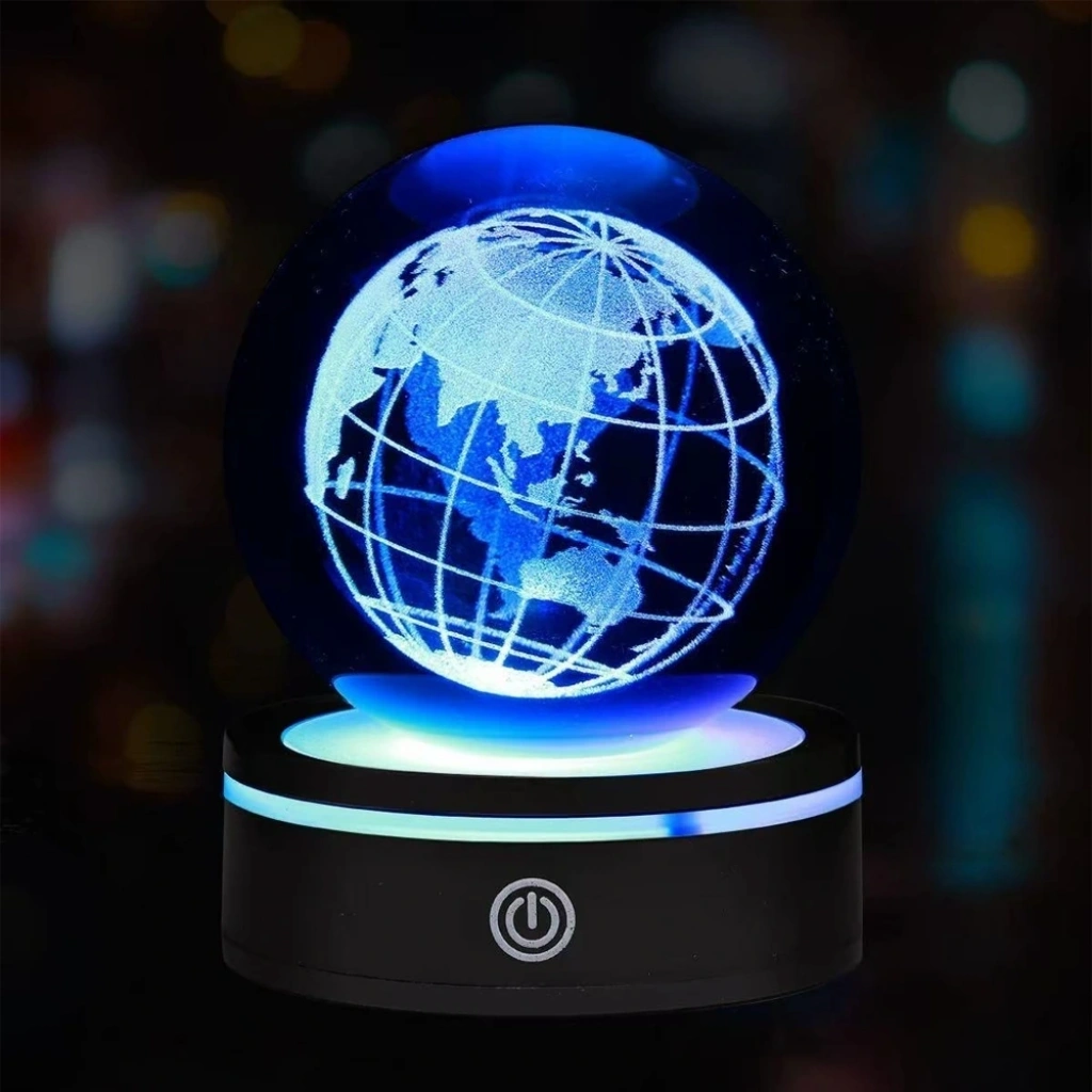 USB'li Dünya Tasarımlı Dönen Cam Küre