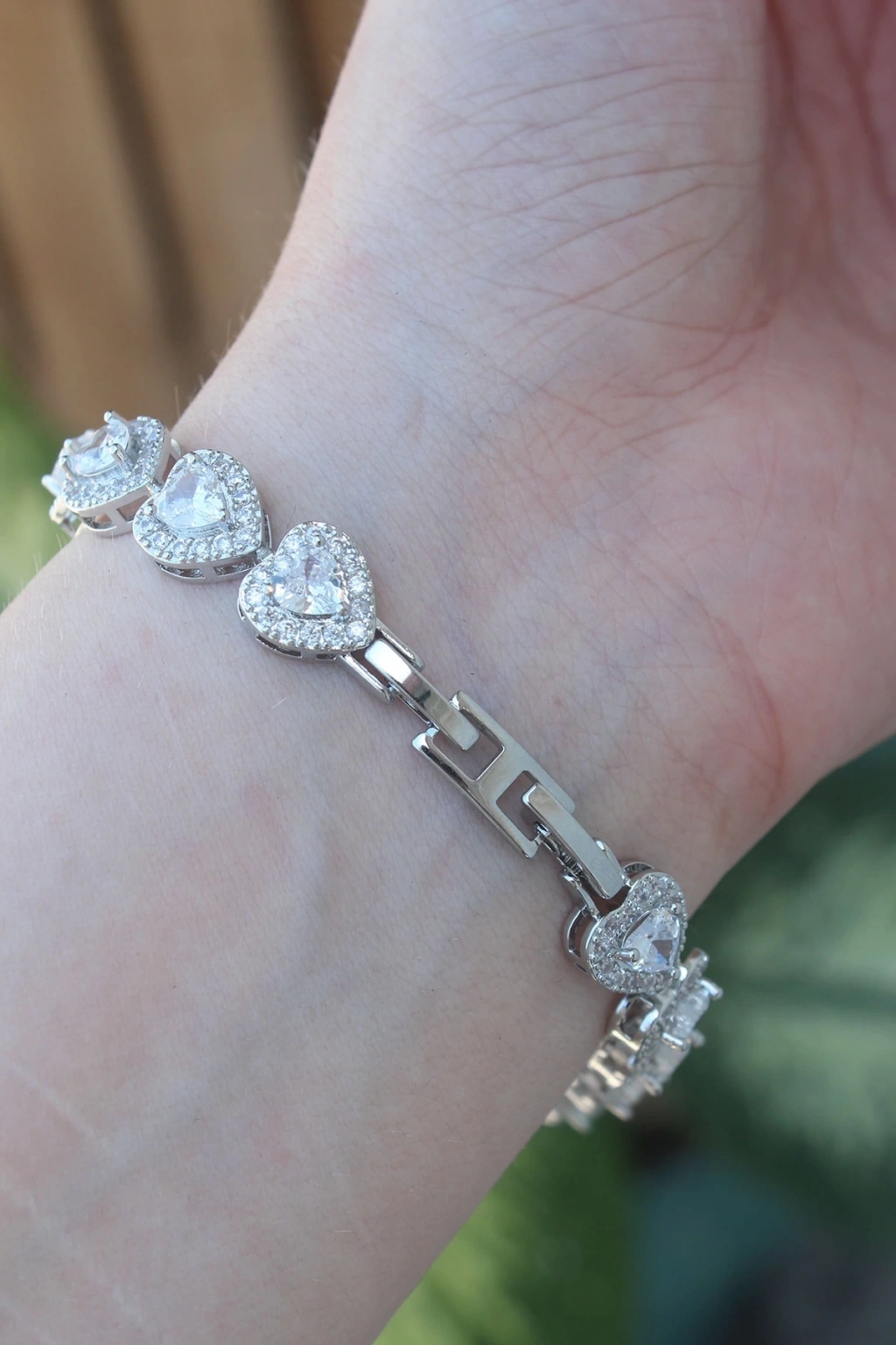 • Vip Seri Pirinç Zirkon Taşlı Gümüş Renk Kalp Model Bileklik