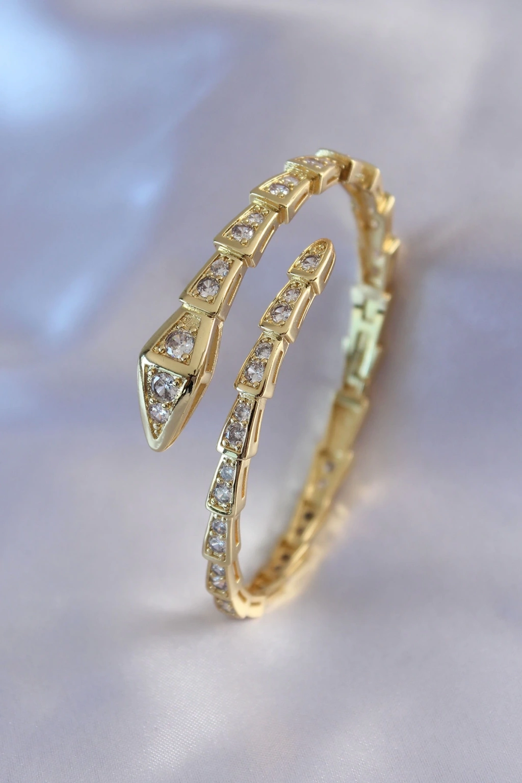 • VIP Seri Yılan Model Gold Renk Kadın Kelepçe Bileklik