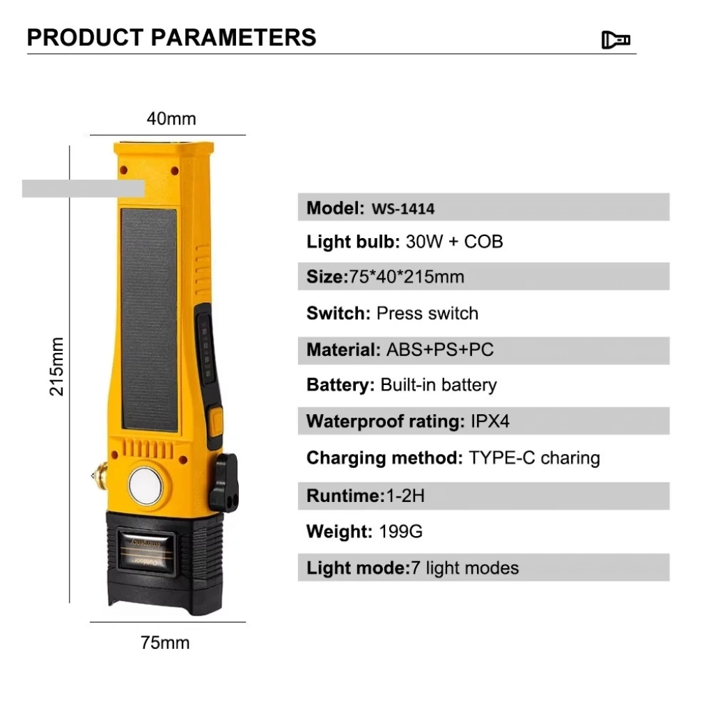 • Wison Ws-1414 Cam Kıracaklı Dijital Göstergeli Mıknatıslı Şarjlı Acil Durum Tamirci Feneri