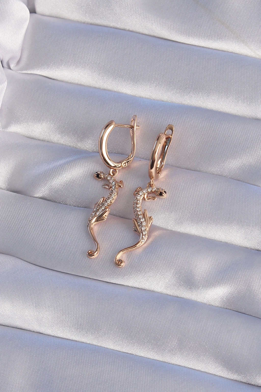 • XUPİNG Rose Renk Zirkon Taşlı Kertenkele Model Halka Küpe